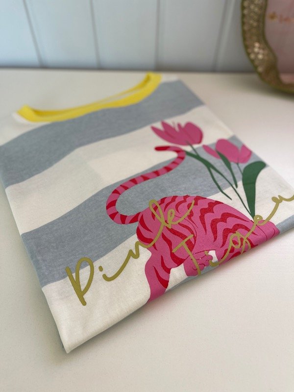 Remera estampada celeste rayas